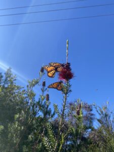 Last Thursday, the air along the drive to the farm shimmered with hundreds of fluttering monarch butterflies. It was like stepping into a dream—orange wings dancing through the light, brushing past the windscreen, reminding us just how alive the landscape is. For nearly a month, these gentle visitors have graced the drive with their presence, filling the air with quiet magic—and more than once, slowing us down for fear of hitting one.